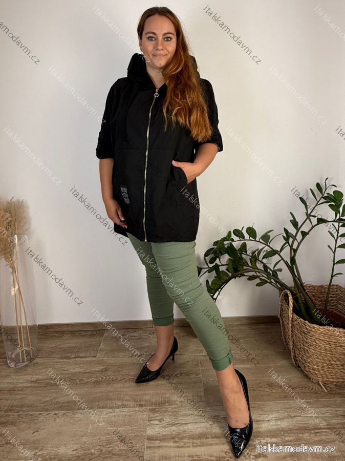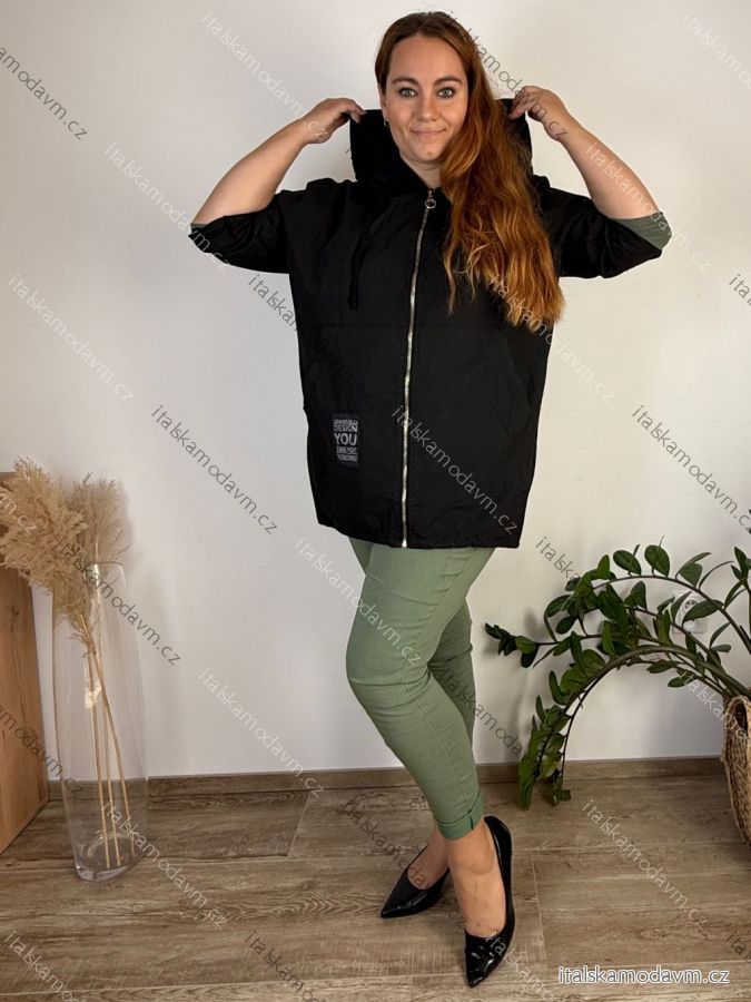 Bunda slabá s kapucí dlouhý rukáv dámská nadrozměr MAYA (52/54/56 ONE SIZE) ITALSKÁ MÓDA IMSM251110/DU 52/54/56 Černá