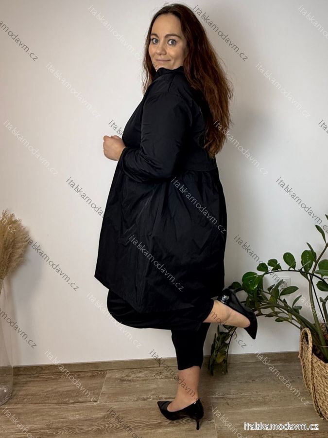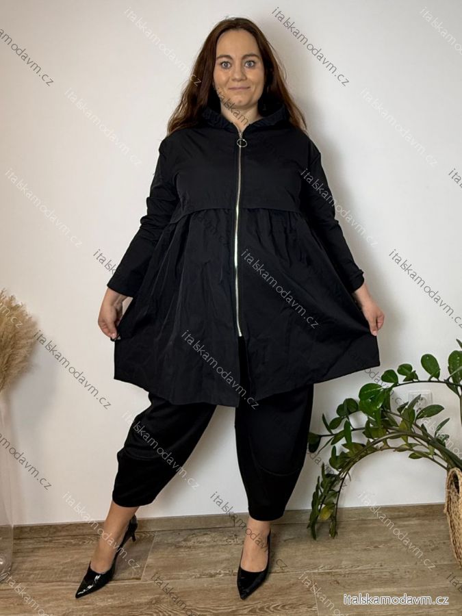 Bunda slabá šusťáková s kapucí dlouhý rukáv dámská nadrozměr (48/50/52 ONE SIZE) ITALSKÁ MÓDA IMSM26038/DU 48/50/52 Černá