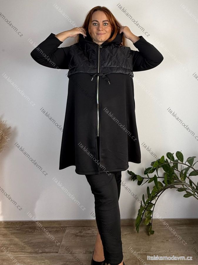Bunda šusťáková s kapucňou na zips dlhý rukáv dámska nadrozmer NIKA (46/48/50 ONE SIZE) TALIANSKA MÓDA IMC25415