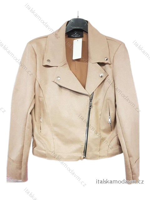 Bunda tenká brúsená koženka dlhý rukáv dámska (S-2XL) TALIANSKA MÓDA IMWHB23001/DU camel hnedá L