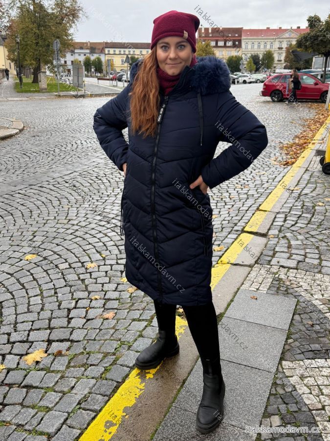 Bunda zimná dámska nadrozmer (3XL-7XL ONE SIZE) POLSKÁ MÓDA PMW25HH-2405TO/DR 4XL tmavo modrá