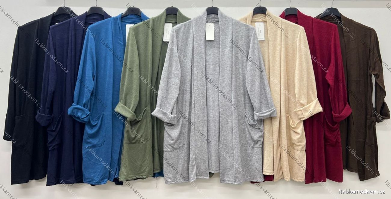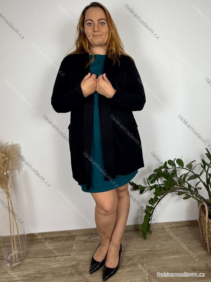 ZBOŽÍ (22025) > Cardigan bavlněný s kapsami dlouhý rukáv dámský nadrozměr (48/50/52 ONE SIZE) ITALSKÁ MÓDA IM425549