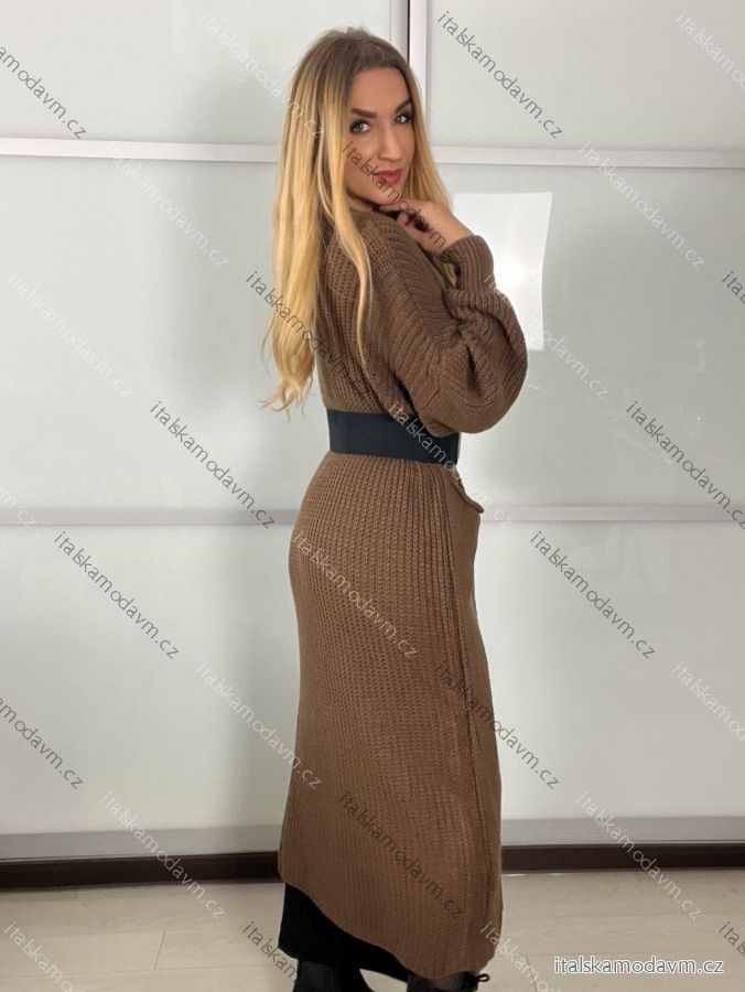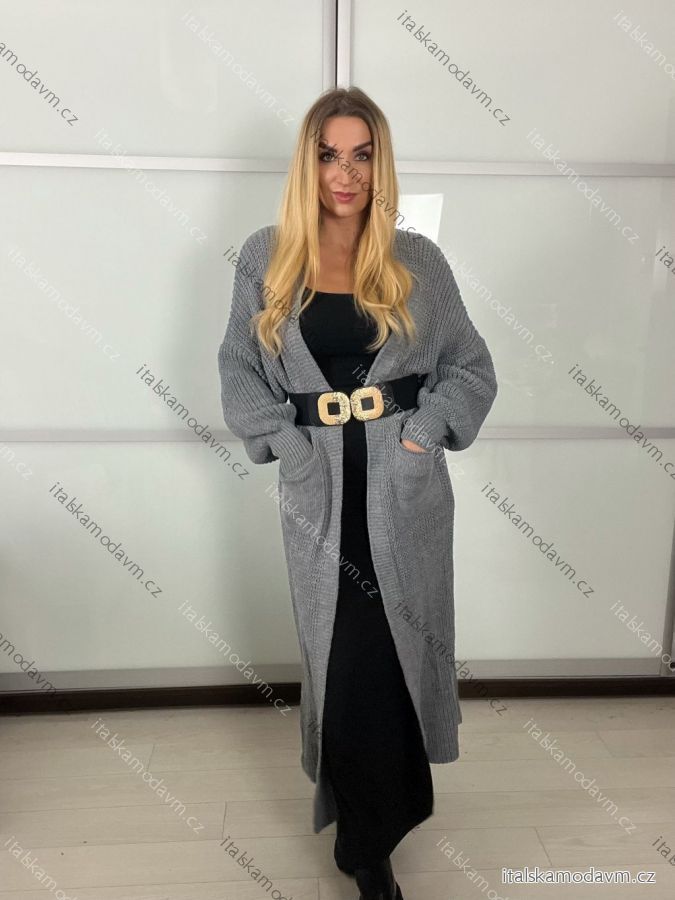 Cardigan dlhý pletený dlhý rukáv dámsky (S/M/L ONE SIZE) TALIANSKA MÓDA IMPLI258091/DU - šedá tmavá - S/M/L