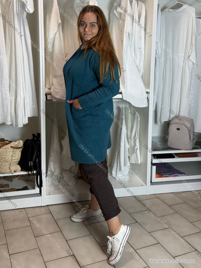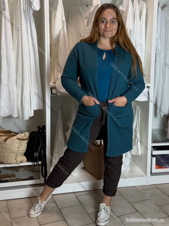 ZBOŽÍ (23042) > Cardigan s kapucí dlouhý rukáv dámský nadrozměr (42/44/46 ONE SIZE) ITALSKÁ MÓDA IMSM251132/DR 42/44/46 modrá petrolejová