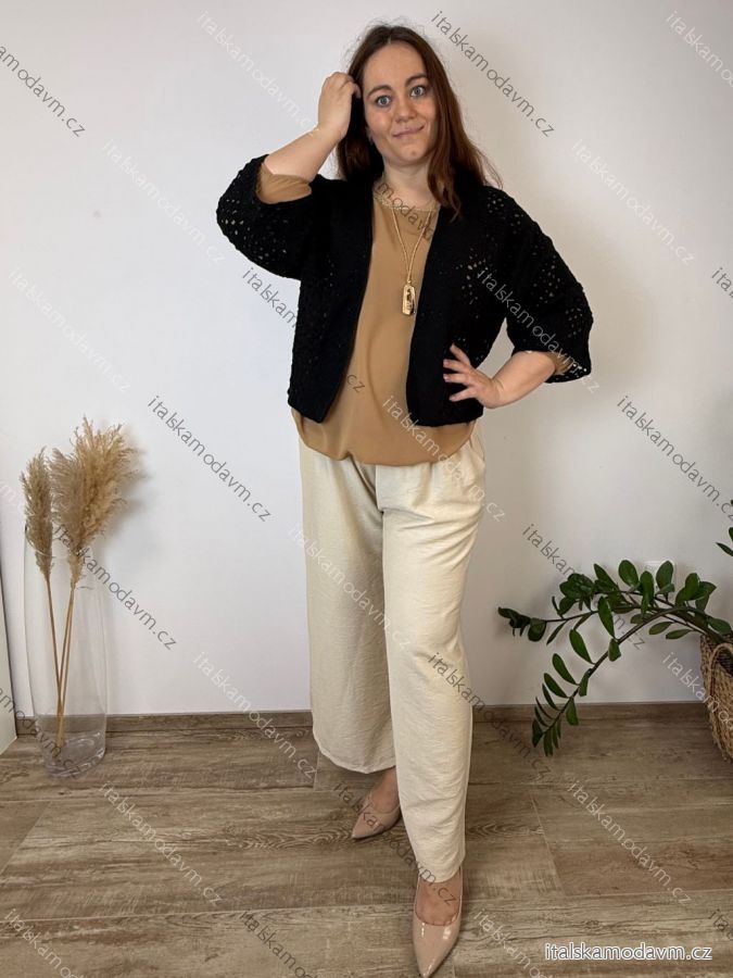 Cardigan krátký 3/4 rukáv dámský nadrozměr (48/50/52 ONE SIZE) ITALSKÁ MÓDA IMSM260028/DU 48/50/52 Černá