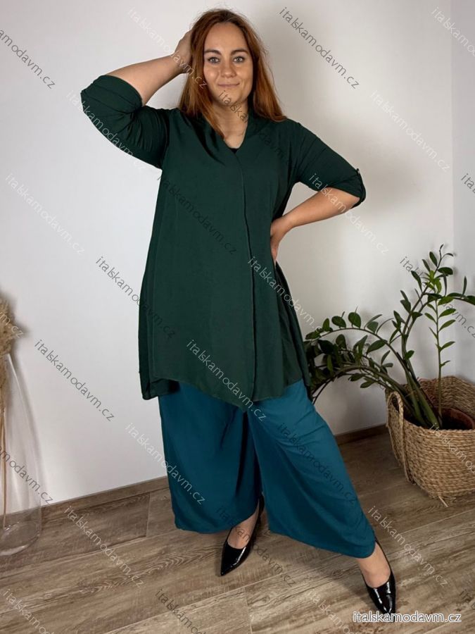 Cardigan letní 3/4 dlouhý rukáv dámský nadrozměr VESUNA (48/50/52 ONE SIZE) ITALSKÁ MÓDA IM425415/DU 48/50/52 tmavě smaragdová