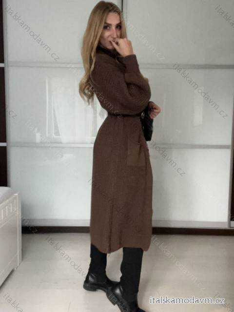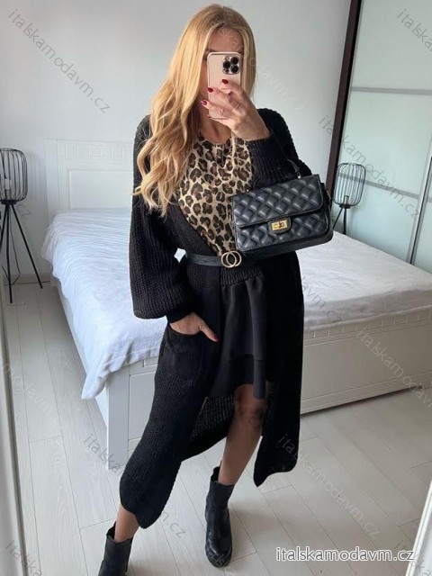 Cardigan pletený dlhý rukáv dámsky (S/M ONE SIZE) TALIANSKA MÓDA IMPLI249061/DU - čierna - S / M