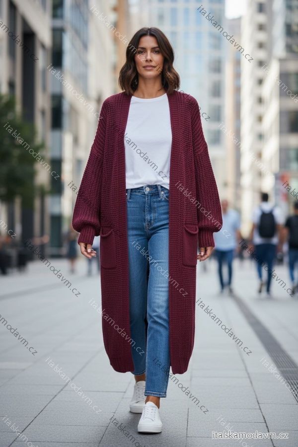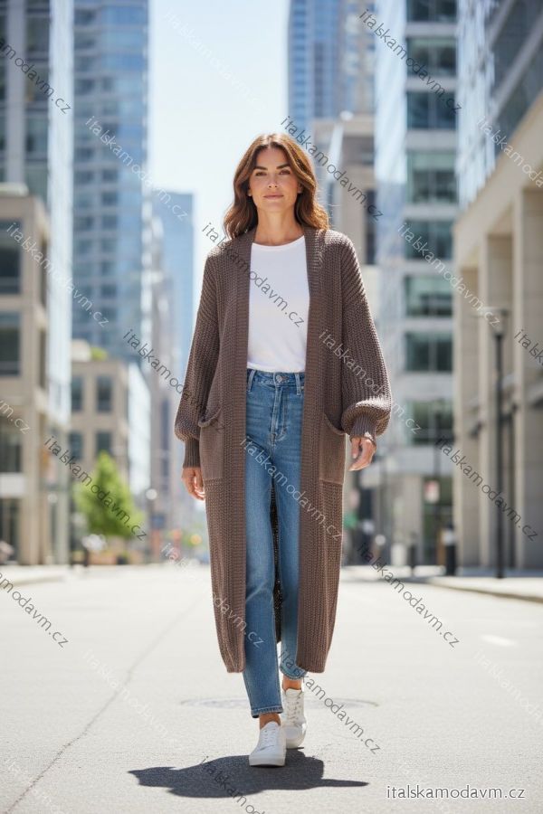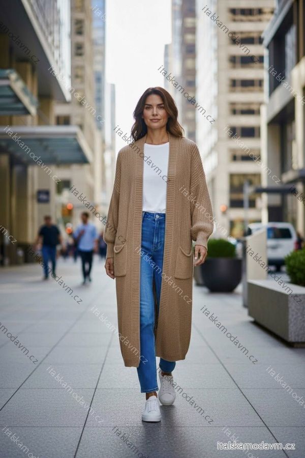 Cardigan pletený dlouhý rukáv dámský nadrozměr (48/50/52 ONE SIZE) ITALSKÁ MÓDA IMD25247