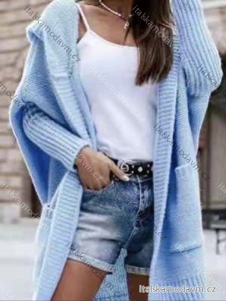 ZBOŽÍ (21842) > Cardigan pletený s kapucňou dlhý rukáv dámsky (S/M/L ONE SIZE) TALIANSKA MÓDA IMWB22303/DR staroružová M / L
