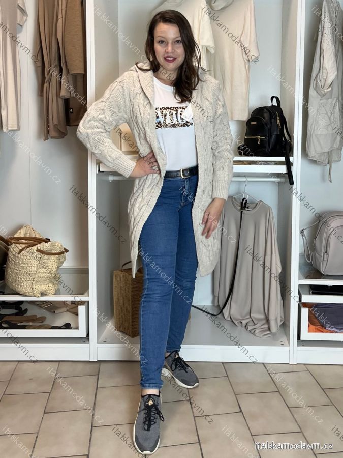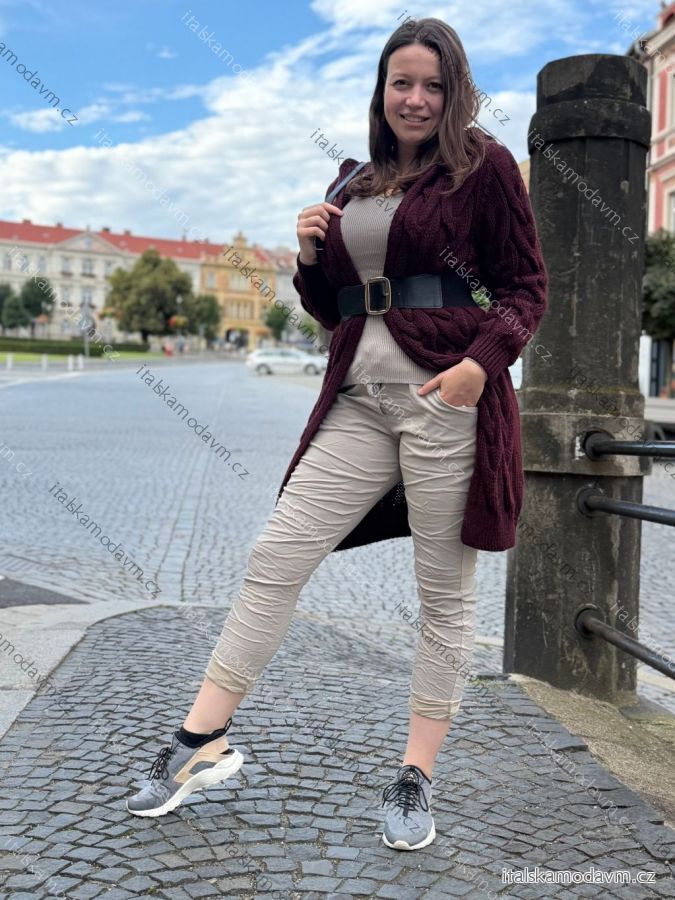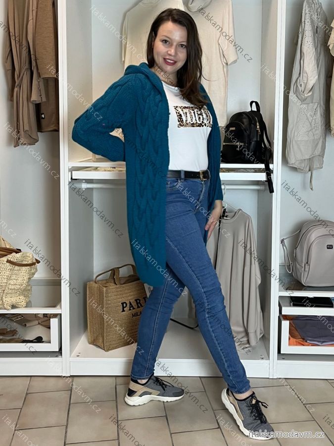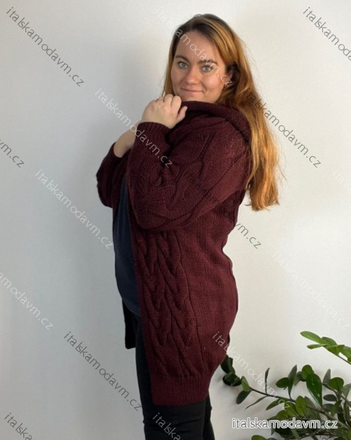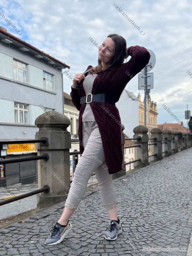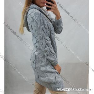 Cardigan pletený teplý dlouhý rukáv dámský (S/M/L ONE SIZE) ITALSKÁ MÓDA IMD221886/DR šedá M/L