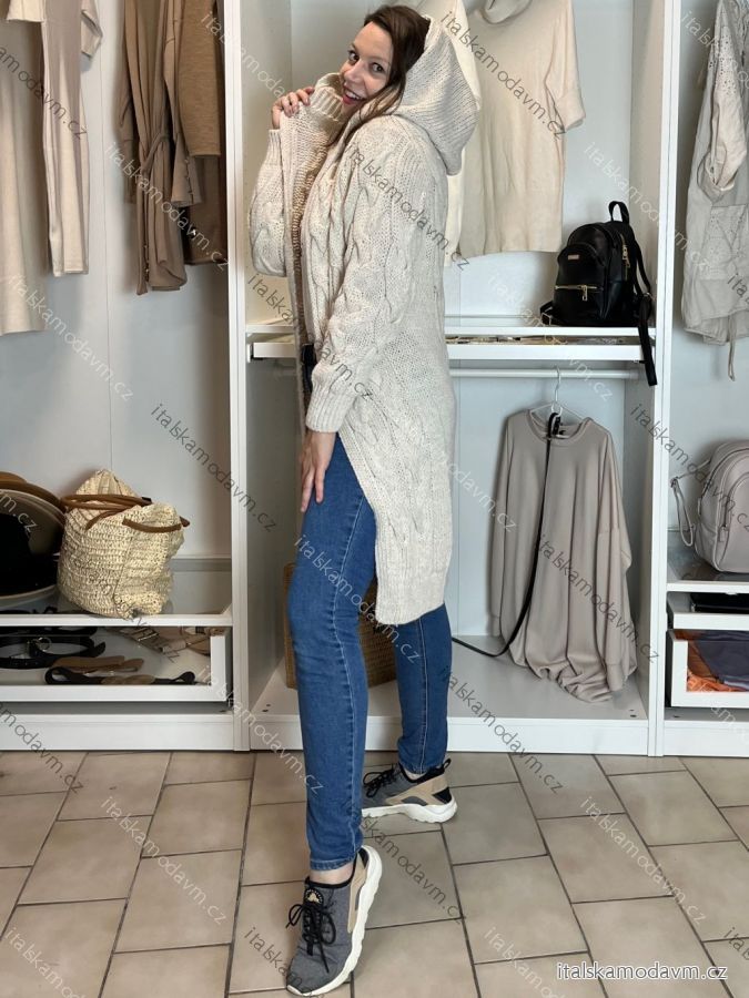 ZBOŽÍ (23054) > Cardigan pletený teplý dlouhý rukáv dámský (S/M/L ONE SIZE) ITALSKÁ MÓDA IMD221886/DR šedá M/L
