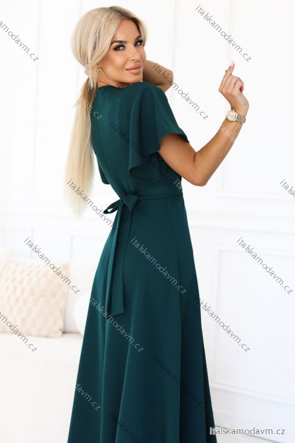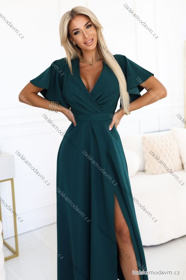 Dlouhé šaty JENNIFER s rozparkem na nohavicích, rukávy a výstřihem (S-3XL) Polská moda NMC-581-8/DUR zelená 3XL