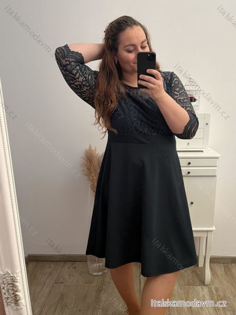 Elegantní šaty 3/4 rukáv dámské nadrozměr (XL/2XL/3XL ONE SIZE) ITALSKá MóDA IM423PALERMO/DU XL/2XL smaragdová