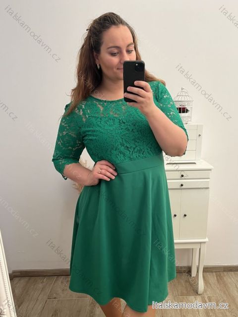 Elegantní šaty 3/4 rukáv dámské nadrozměr (XL/2XL/3XL ONE SIZE) ITALSKá MóDA IM423PALERMO/DU XL/2XL zelená