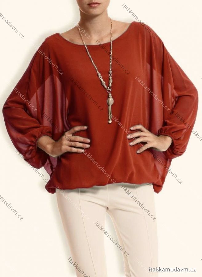 Halenka šifonová s přívěskem dlouhý rukáv dámská (S/M/L ONE SIZE) ITALSKÁ MÓDA IMD25195