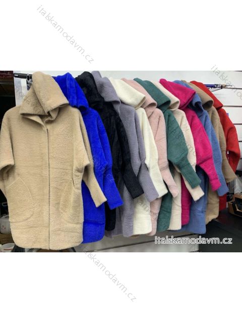 Kabát alpaka teplý dlhý rukáv s kapucňou dámsky (S / M / L ONE SIZE) TALIANSKÁ MÓDA IMWD20476 camel hnedá