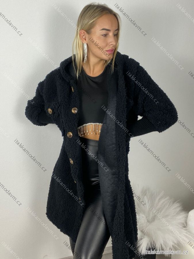 Kabát baránkový oversize na gombíky dlhý rukáv dámsky (M/L/XL ONE SIZE) INDICKÁ MÓDA IMWK251111/DUR M/L/XL vínová