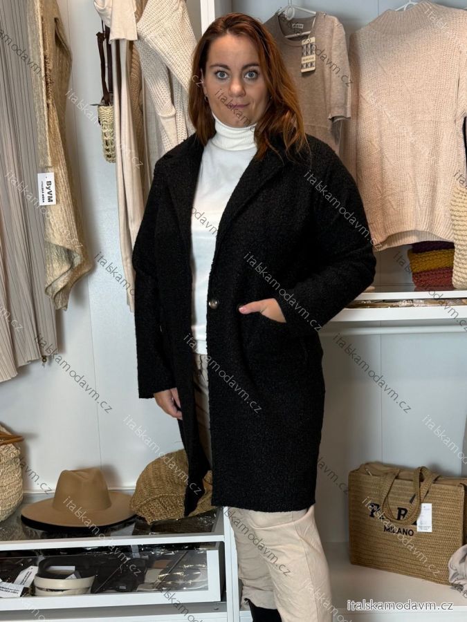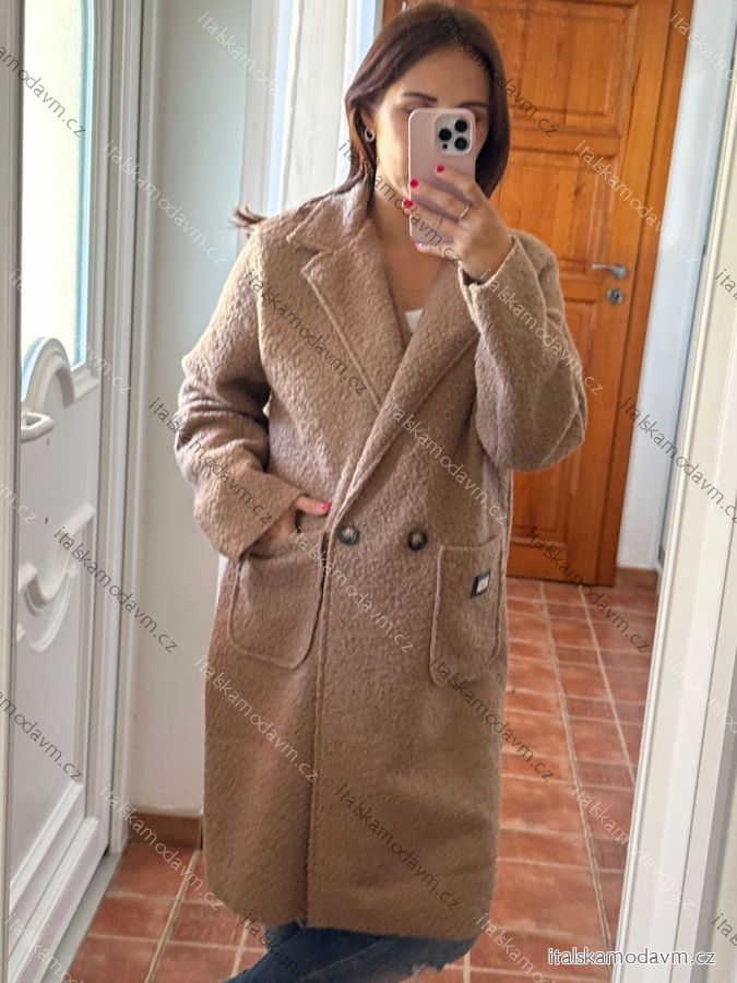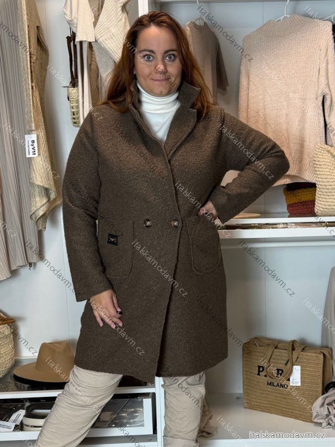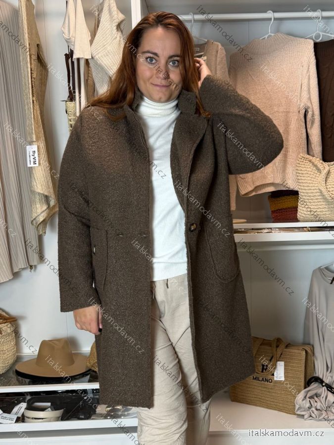 Kabát beránek dlouhý rukáv dámský nadrozměr OLGA (48/50/52 ONE SIZE) ITALSKÁ MÓDA IMWCH251111/DUR 48/50/52 tmavě béžová