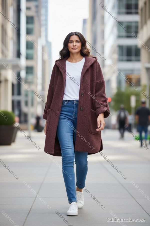 Kabát beránkový dlouhý rukáv dámský nadrozměr (54/56/58 ONE SIZE) ITALSKÁ MÓDA IMD25160