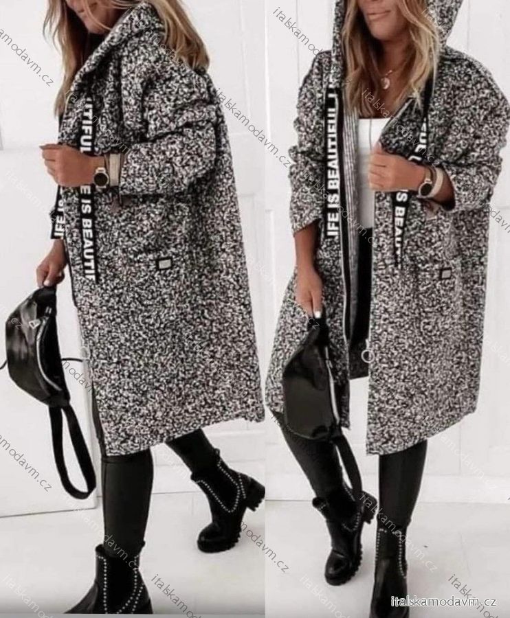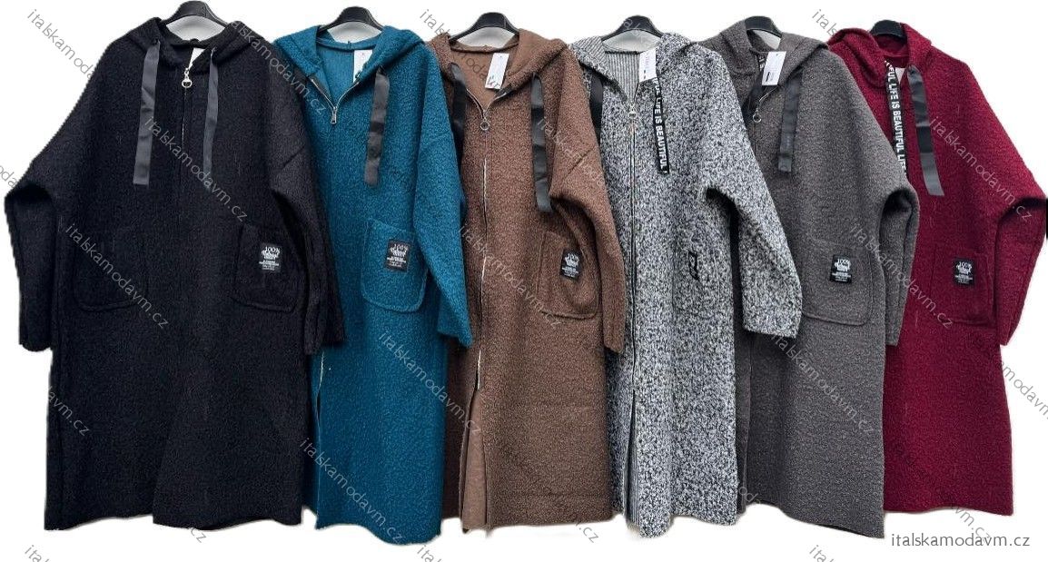 Kabát beránkový flaušový dlouhý rukáv dámský nadrozměr (54/56/58 ONE SIZE) ITALSKÁ MÓDA IMD25193