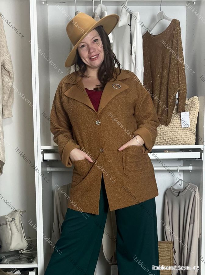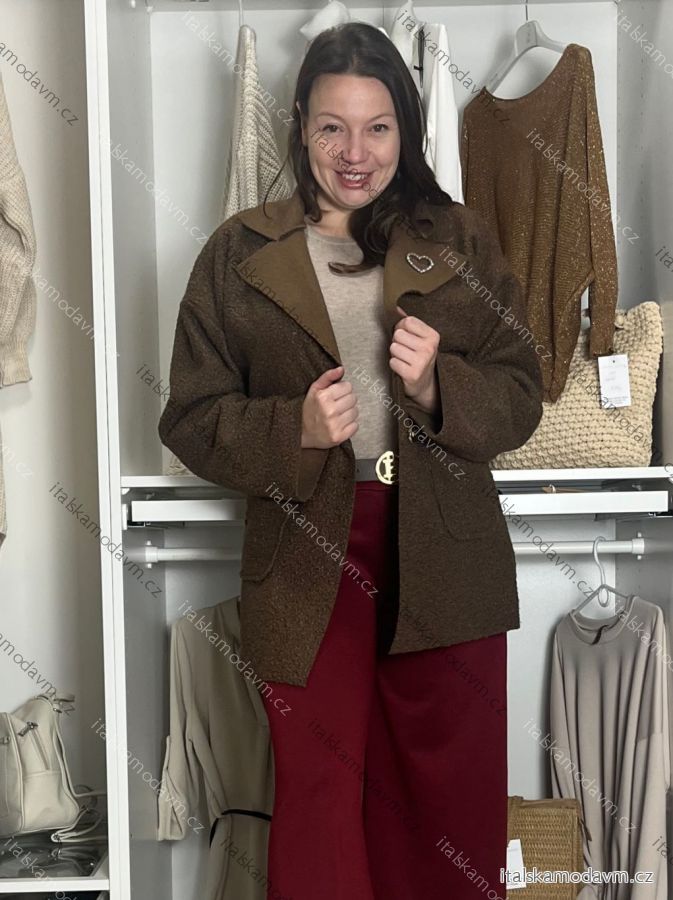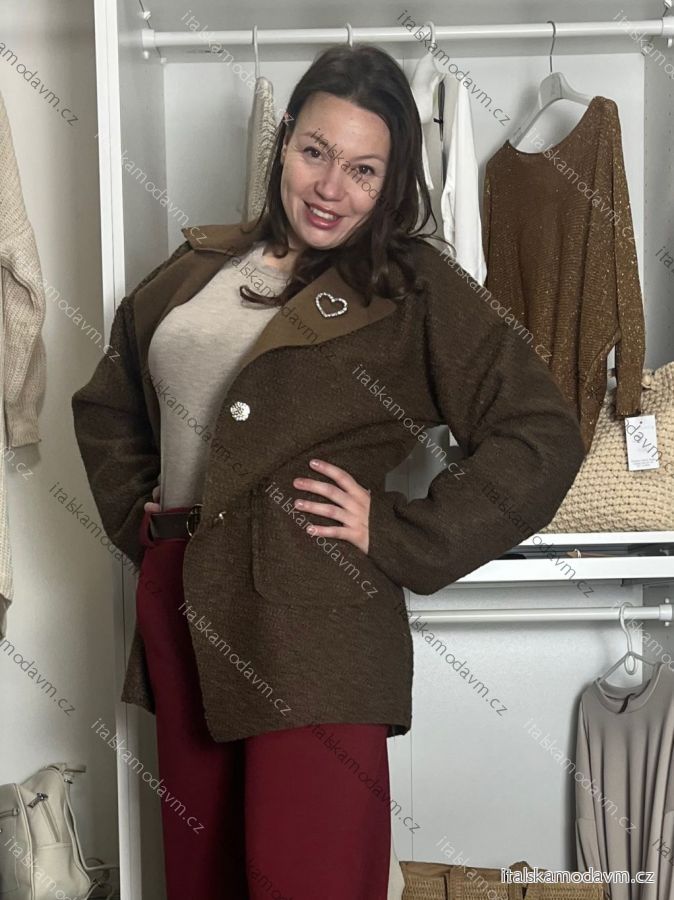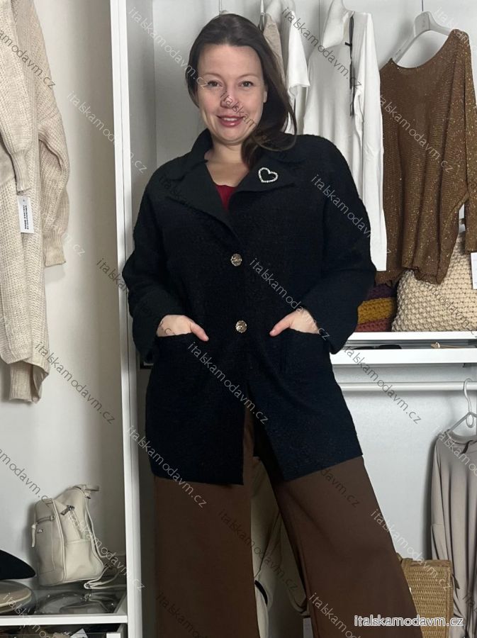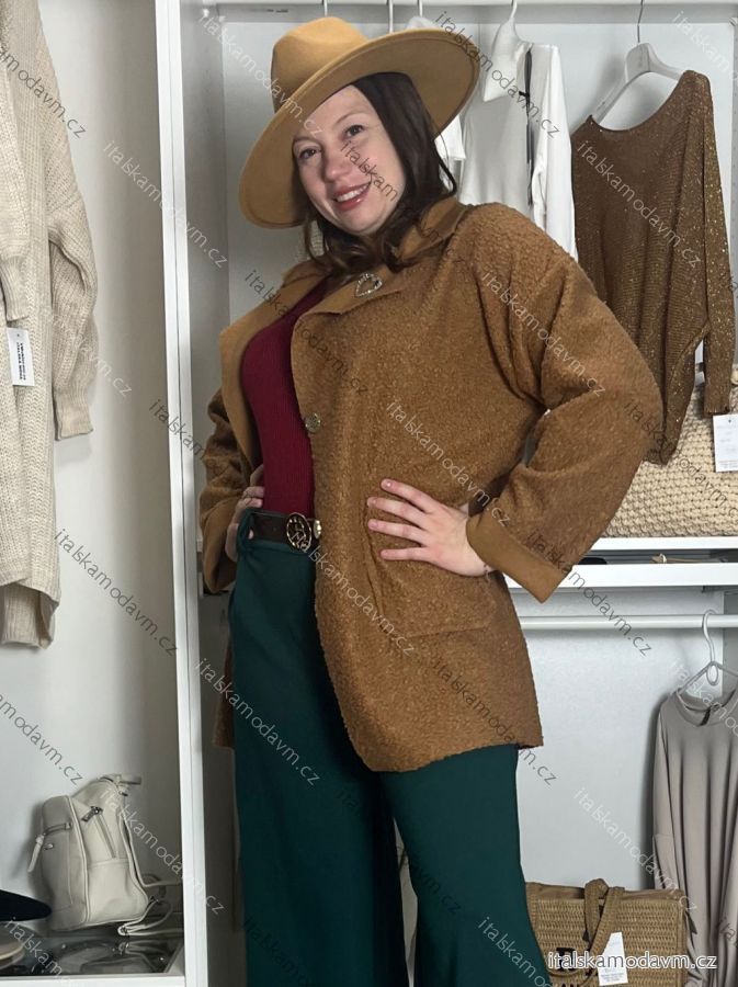 Kabát beránkový na knoflíky dlouhý rukáv dámský HEART (40/42/44 ONE SIZE) INDICKÁ MÓDA IMWKA252696/DUR 40/42/44 hnědá