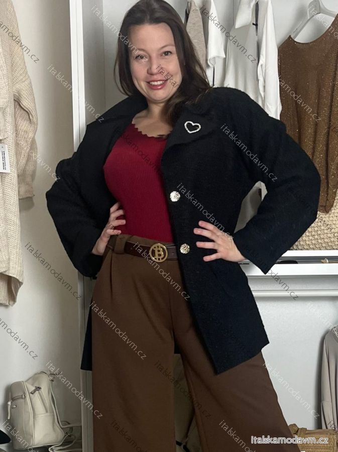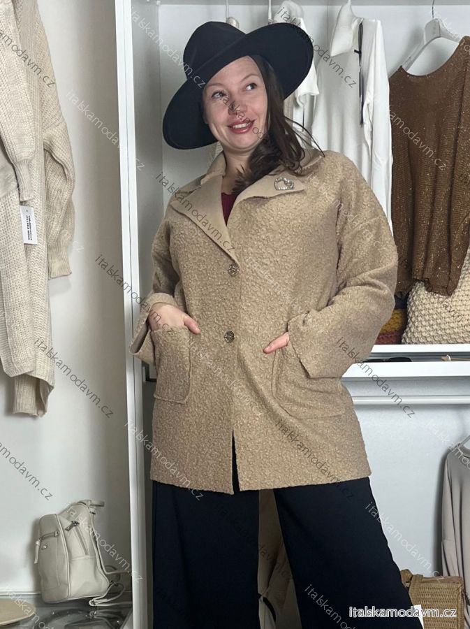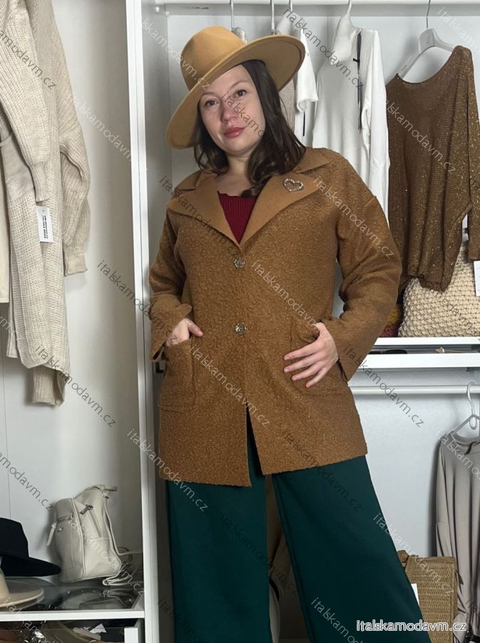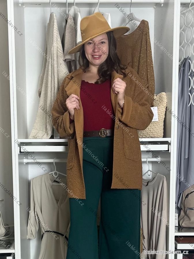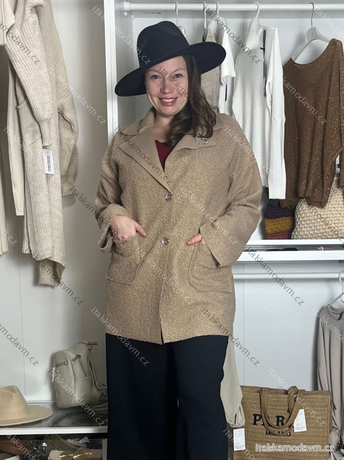 Kabát beránkový na knoflíky dlouhý rukáv dámský HEART (40/42/44 ONE SIZE) INDICKÁ MÓDA IMWKA252696/DUR 40/42/44 hnědá