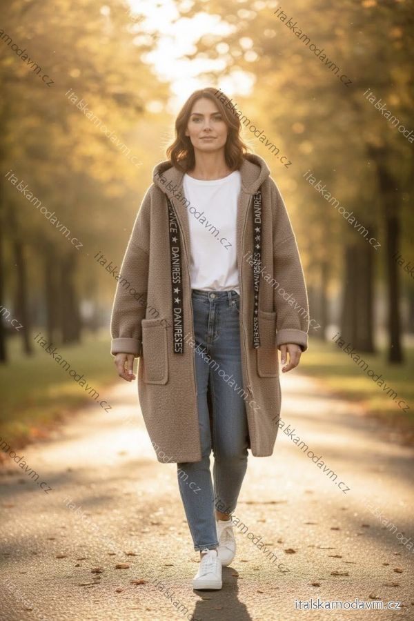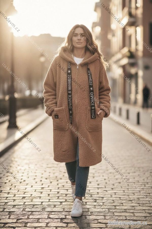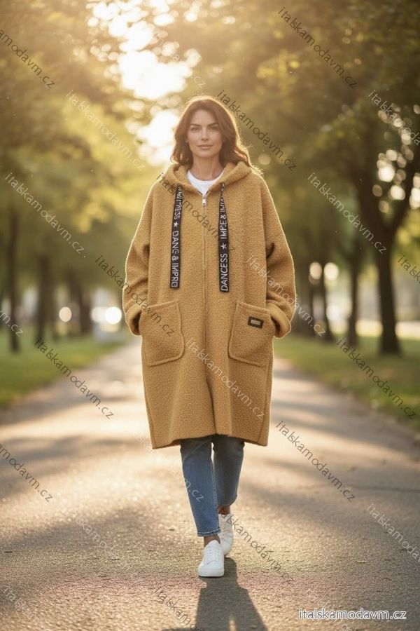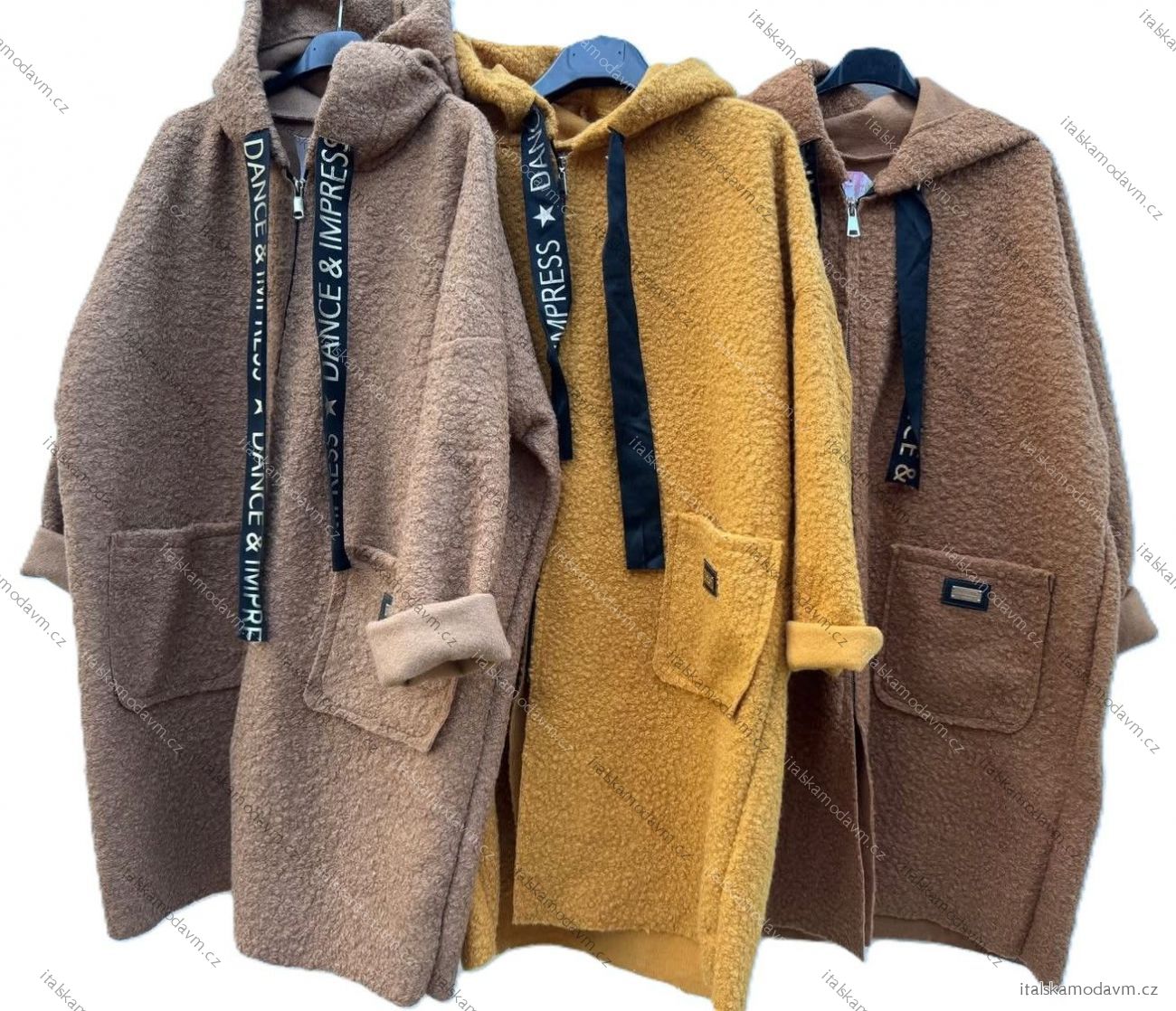 Kabát beránkový s kapucí dlouhý rukáv dámský nadrozměr (50/52/54 ONE SIZE) ITALSKÁ MÓDA IMD25271