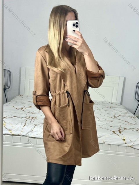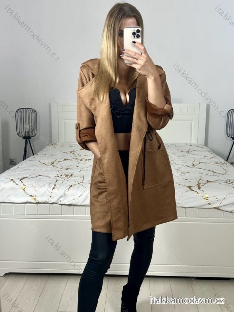 Kabát broušená koženka dámský (L/XL ONE SIZE) ITALSKÁ MÓDA IM423098