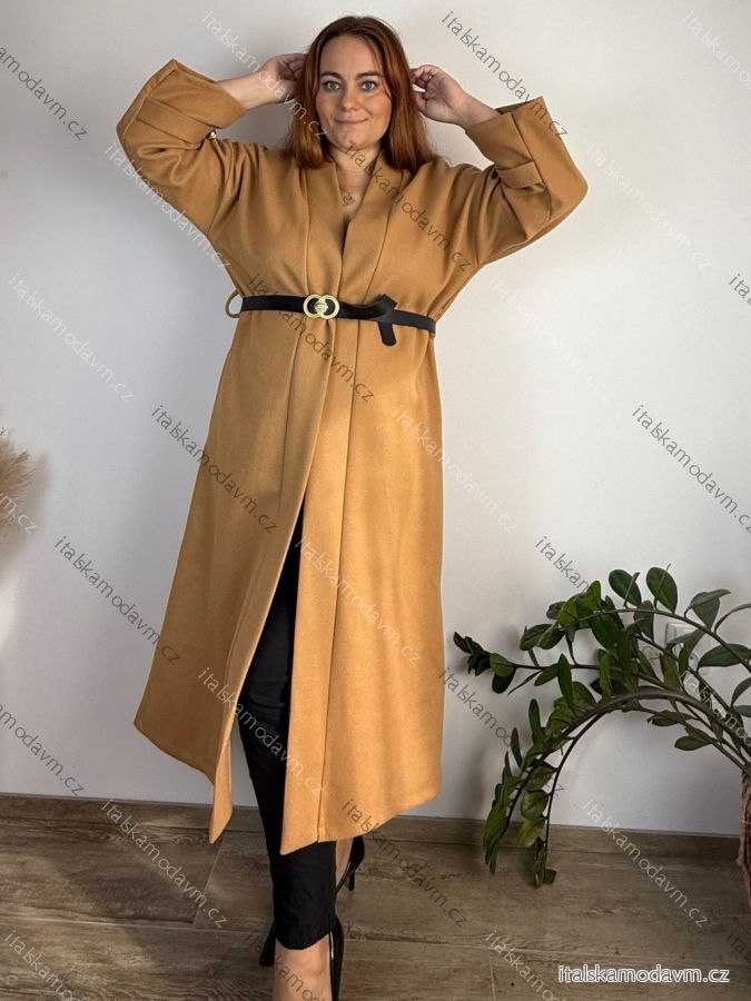 ZBOŽÍ (22028) > Kabát dlouhý s páskem dlouhý rukáv dámský nadrozměr (52/54/56 ONE SIZE) ITALSKÁ MÓDA IMC25399/DR 52/54/56 hnědá camel