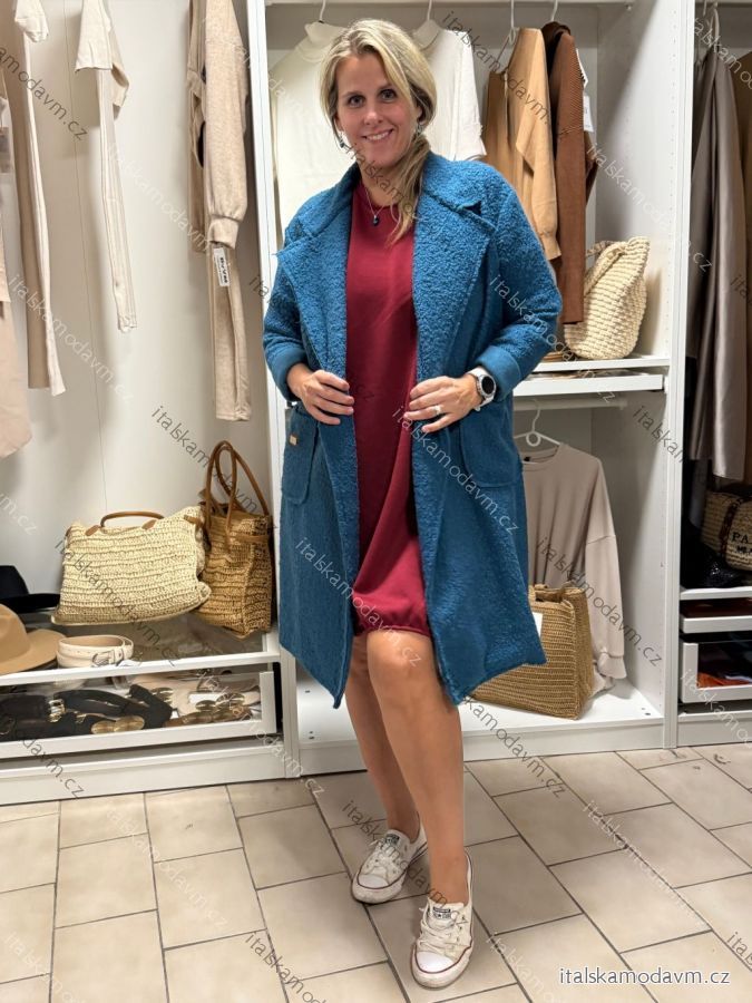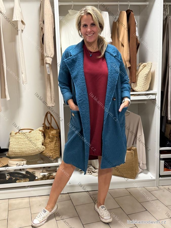 Kabát flaušový beránek dámský nadrozměr (46/48/50 ONE SIZE) ITALSKá MóDA IM3251113/DU 46/48/50 modrá petrolejová