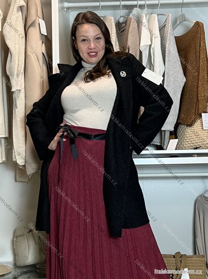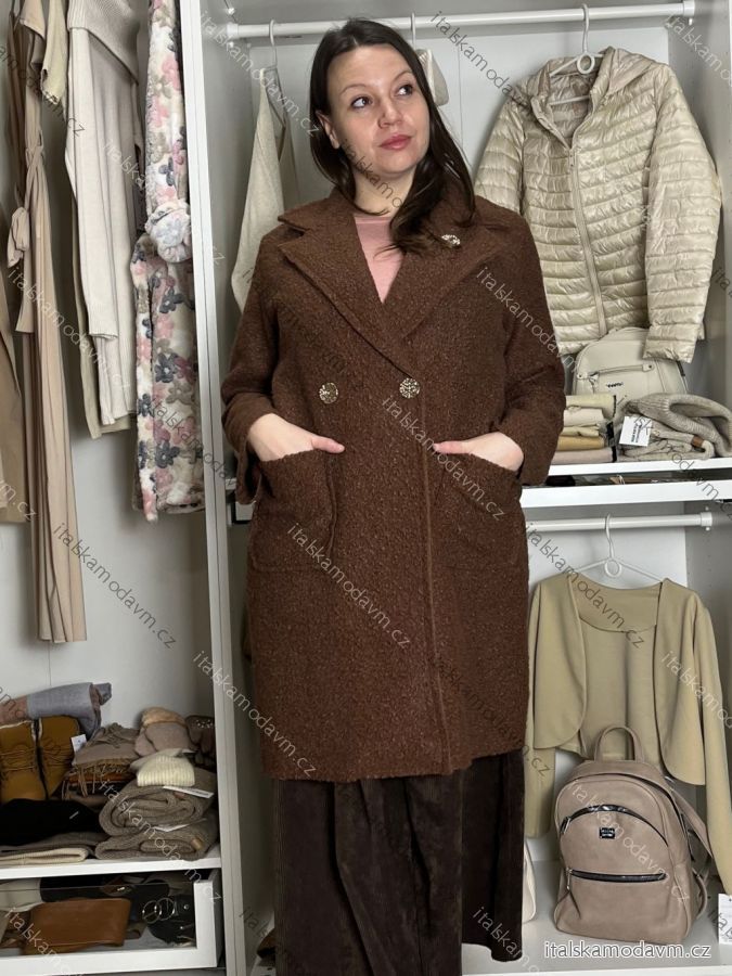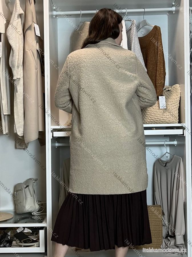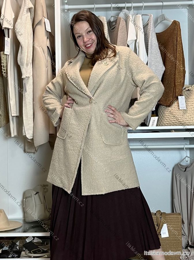 Kabát flaušový beránkový dlouhý rukáv dámský nadrozměr (44/46/48 ONE SIZE) ITALSKÁ MÓDA IM4251121