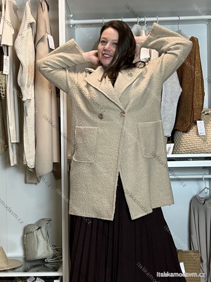 Kabát flaušový beránkový dlouhý rukáv dámský nadrozměr (44/46/48 ONE SIZE) ITALSKÁ MÓDA IM4251121/DUR 44/46/48 béžová