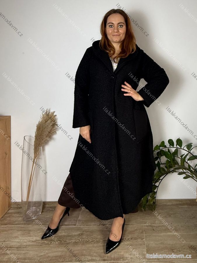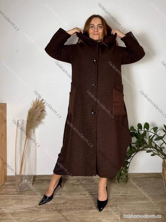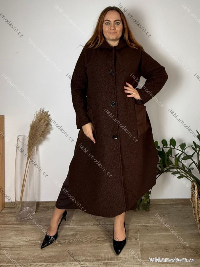 ZBOŽÍ (21710) > oblečenie dámske (17519) > Bundy, kabáty, vesty a saka (1221) > kabáty dámske (460) > kabáty flaušový (144) > Kabát flaušový dlhý rukáv dámsky nadrozmer LADY (52/54/56 ONE SIZE) TALIANSKA MÓDA IMD25249