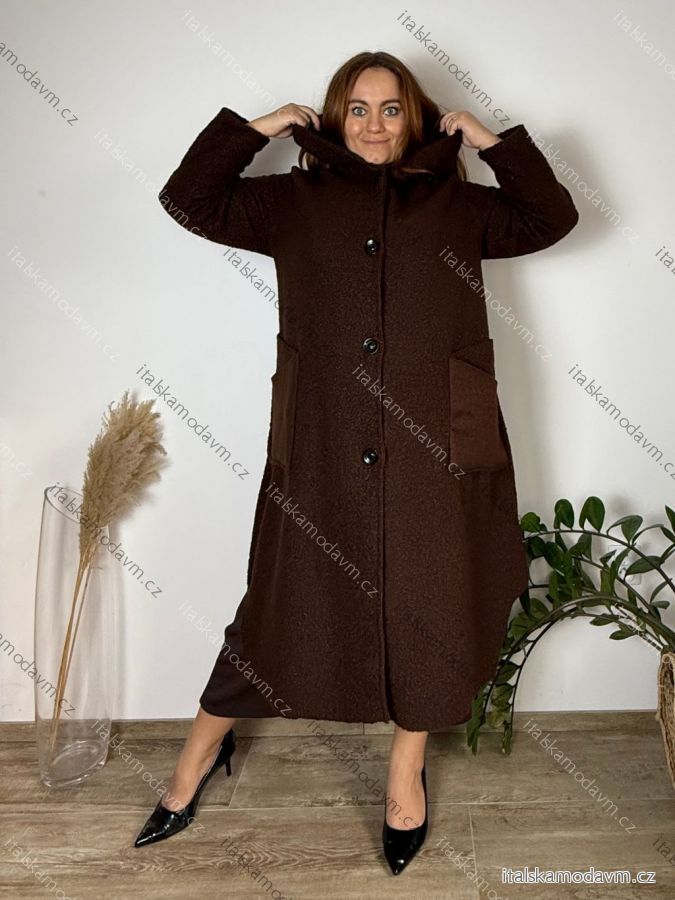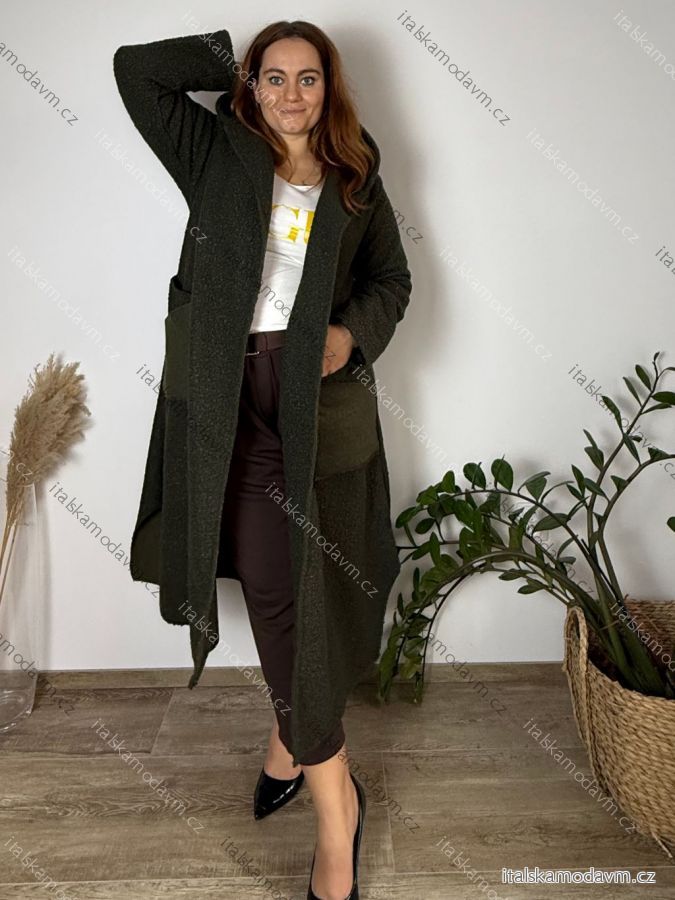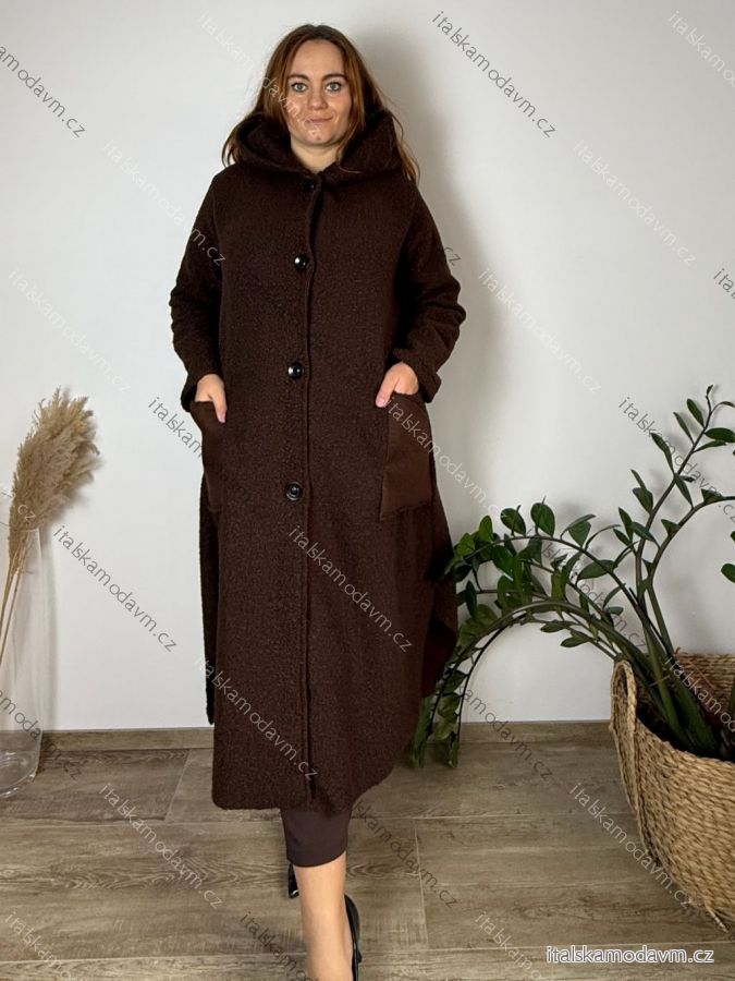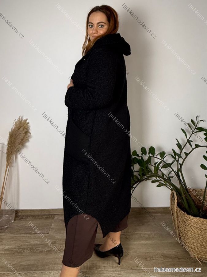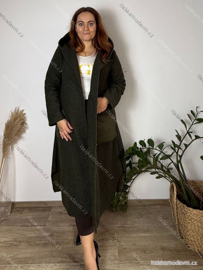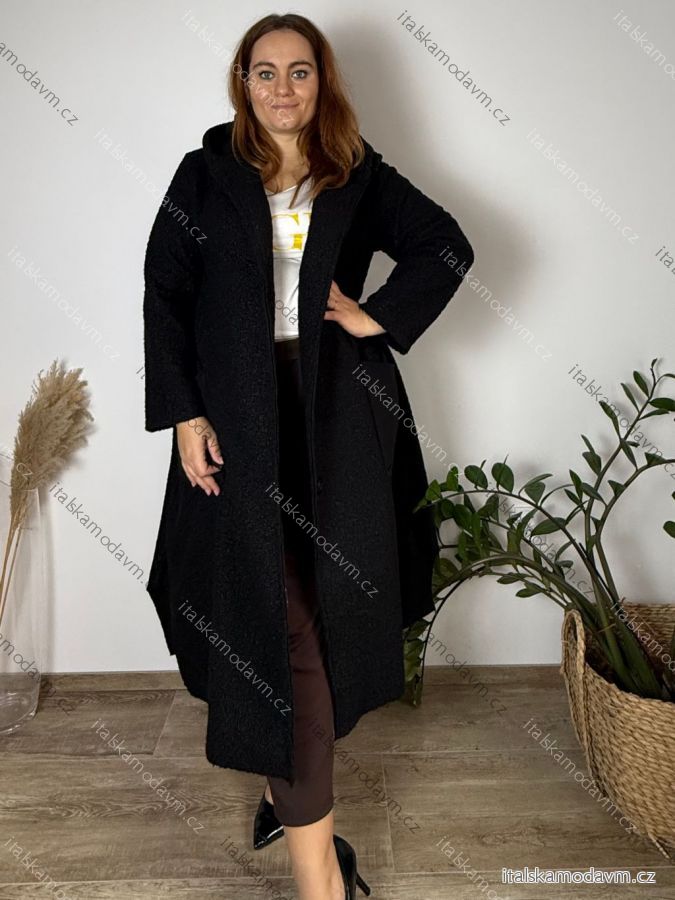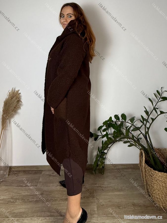 Kabát flaušový dlhý rukáv dámsky nadrozmer LADY (52/54/56 ONE SIZE) TALIANSKA MÓDA IMD25249