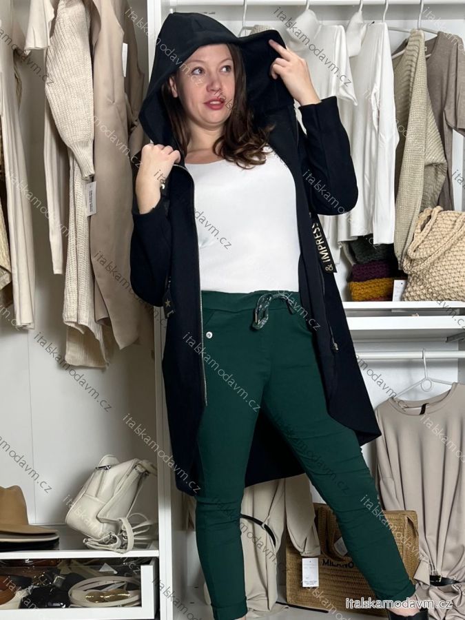 Kabát flaušový na zip dlouhý dámský DANCE (M/L/XL) ITALSKÁ MÓDA IMD25282/DUR M/L/XL Černá