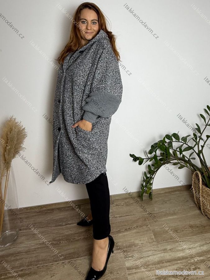 Kabát flaušový teplý dlhý rukáv dámsky nadrozmer (54/56/58 ONE SIZE) TALIANSKA MÓDA IMD25274