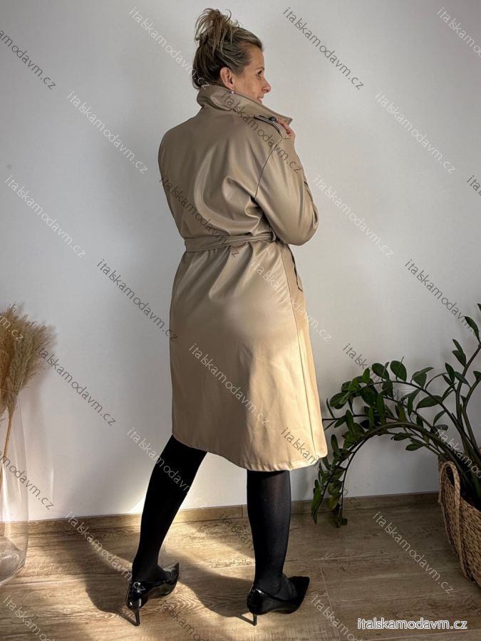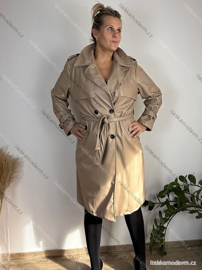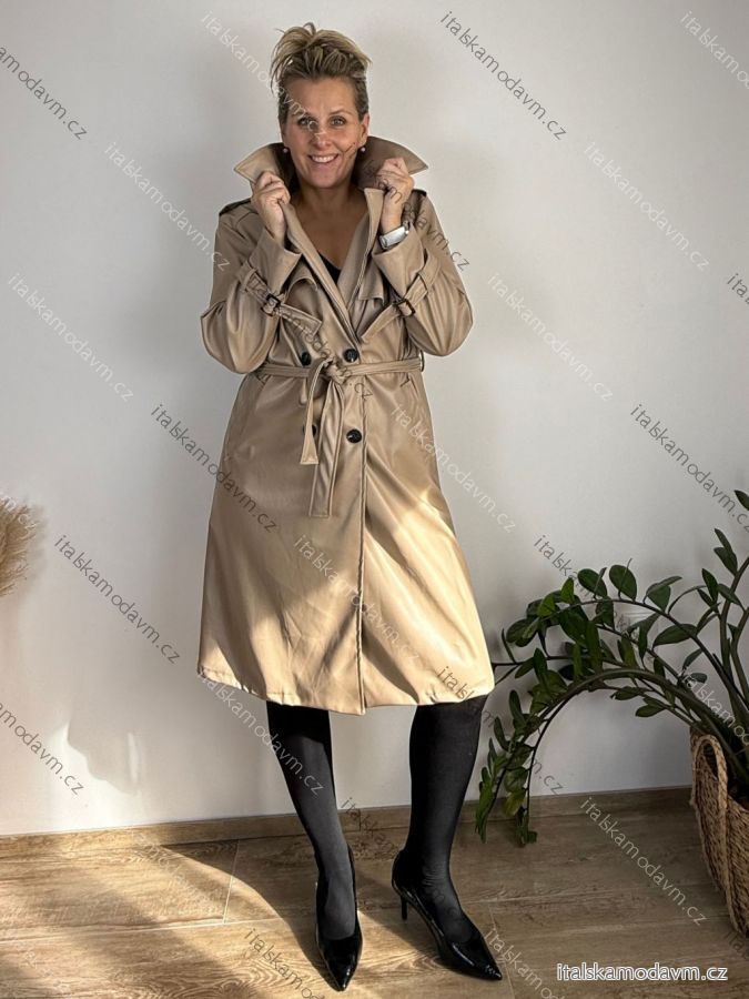 ZBOŽÍ (23040) > Kabát koženkový s páskem dlouhý rukáv dámský GITA (M/L/XL ONE SIZE) ITALSKÁ MÓDA IMWCA252824/DUR M/L/XL béžová