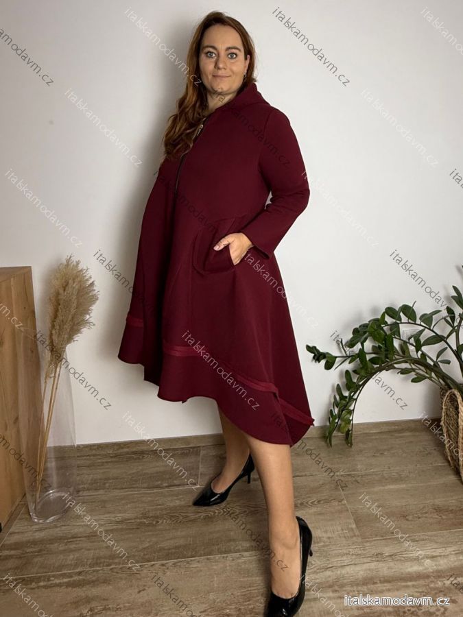 Kabát/Mikina predĺžená teplá oversize dlhý rukáv dámska nadrozmer (48/50/52 ONE SIZE) TALIANSKA MÓDA IMD25254/DUR vínová