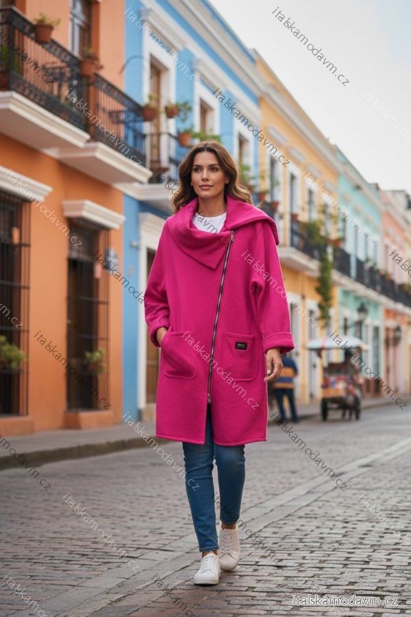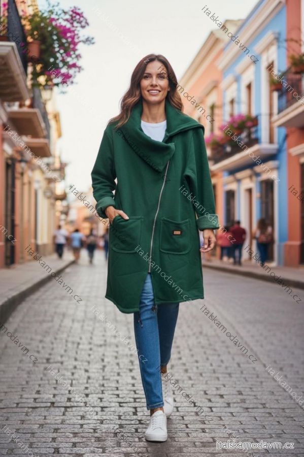 Kabát na zip dlhý dámsky nadrozměr (46/48/50) TALIANSKA MÓDA IMD25281