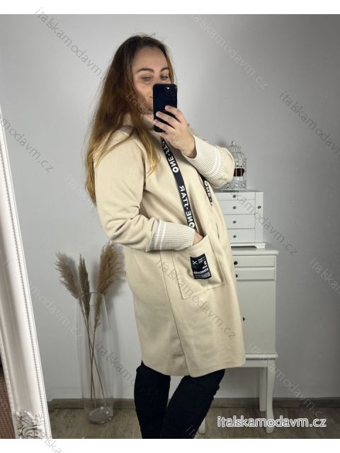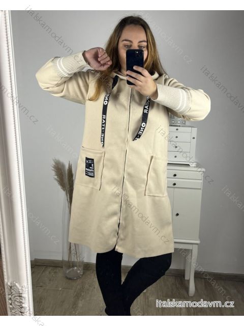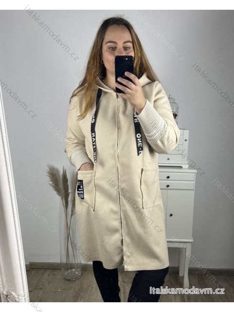 Kabát na zip s kapucí dlouhý rukáv dámská nadrozměr (2XL/3XL ONE SIZE) ITALSKÁ MÓDA IM423STAR/DU Barva béžová Velikost 2XL/3XL