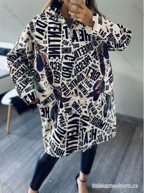Kabát podzimní na zip dlouhý rukáv dámský nadrozměr (3XL/4XL ONE SIZE) ITALSKÁ MÓDA IMD23749