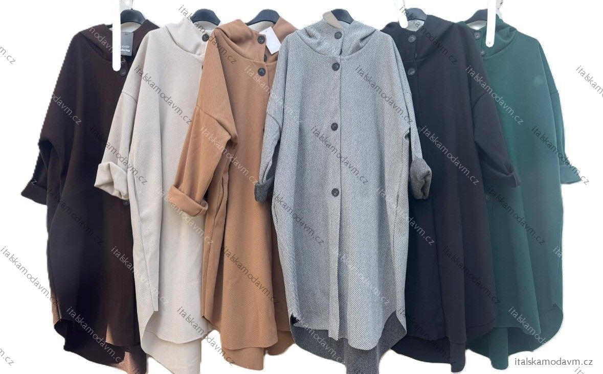 Kabát slabý na knoflíky s kapucí dlouhý rukáv dámský nadrozměr (54/56/58 ONE SIZE) ITALSKÁ MÓDA IMD24413