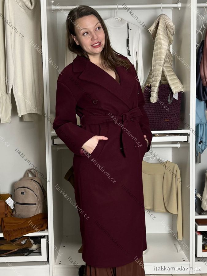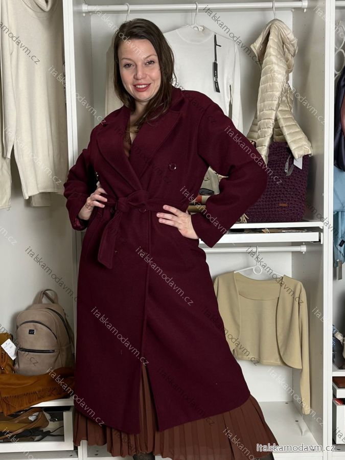 Kabát zimný dlhý rukáv dámsky (S/M/L ONE SIZE) TALIANSKA MÓDA IMD25527/DU S/M/L vínová