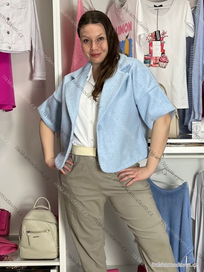 Kabátek teplý oversize krátký rukáv dámský (XS/M/L/XL/2XL ONE SIZE) ITALSKÁ MÓDA IMC26069/DR tmavě béžová M/L/XL
