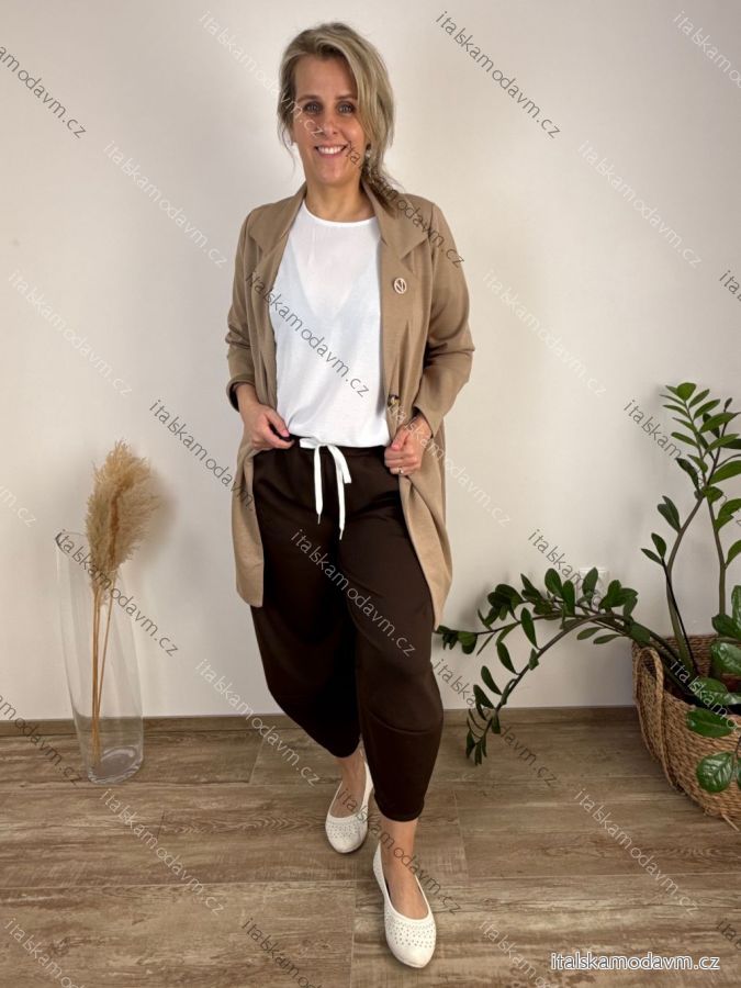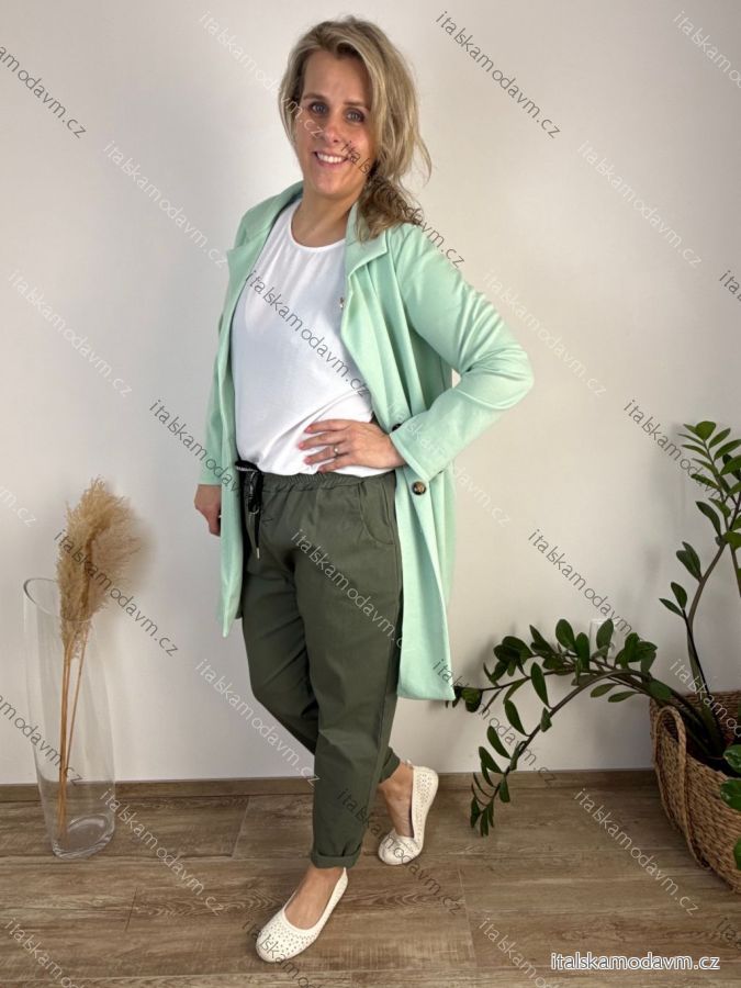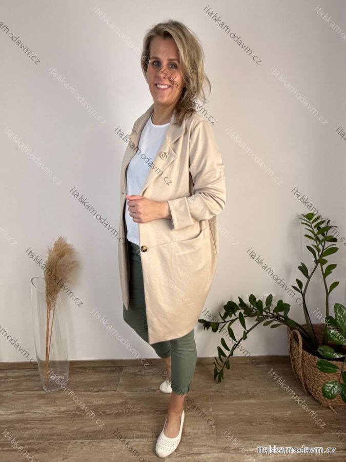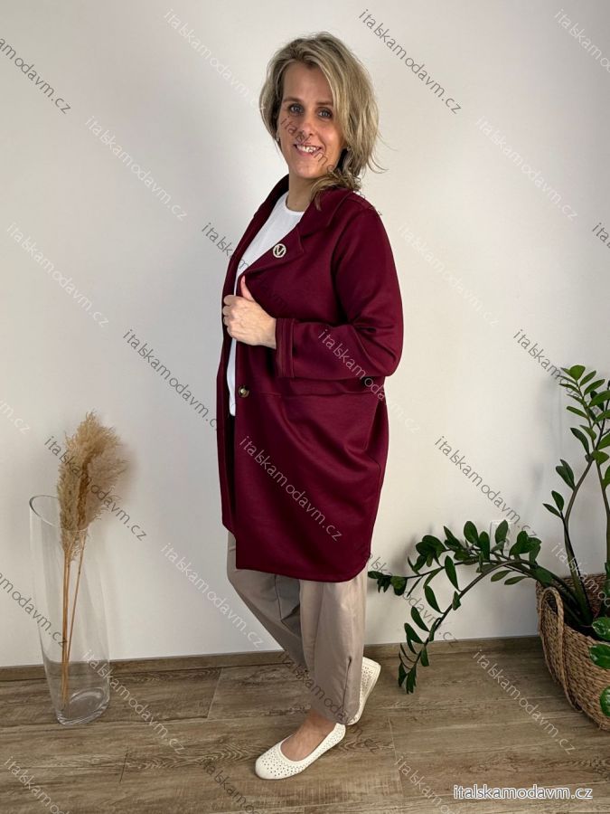 Kabátik slabý s vreckami na gombíky dlhý rukáv dámsky nadrozmer (44/46/48 ONE SIZE) TALIANSKA MÓDA IM426011/DUR 44/46/48 tmavo ružová