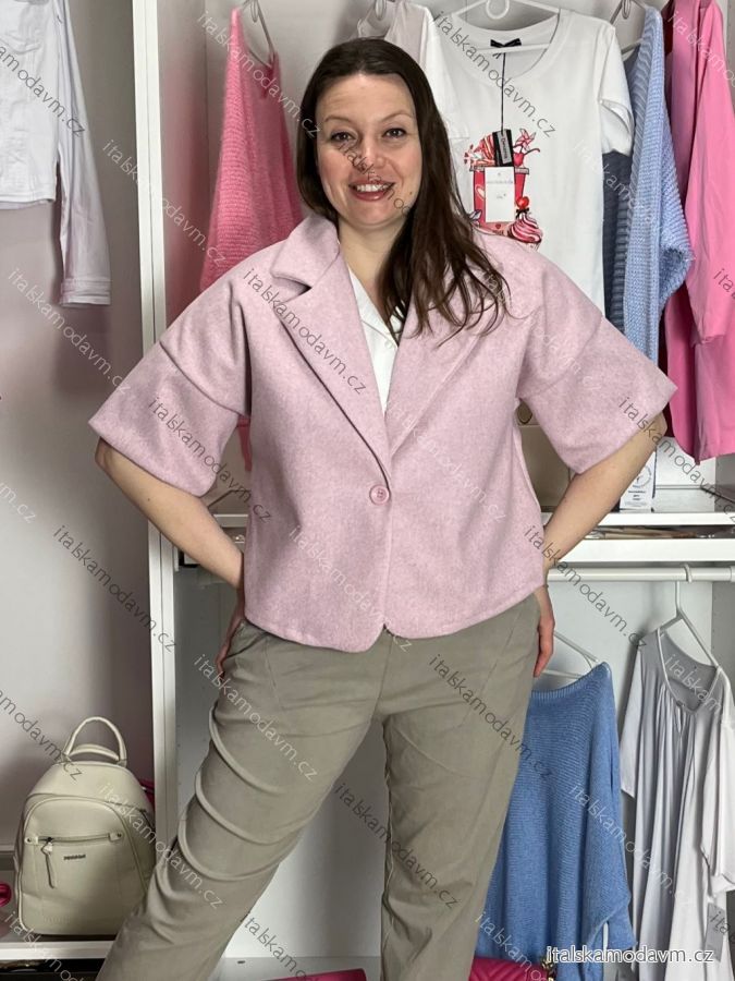 Kabátik teplý krátky rukáv dámsky (M/L/XL ONE SIZE) TALIANSKA MÓDA IMC26069/DR M/L/XL růžová světlá