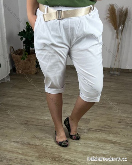 Kalhoty 3/4 letní strečové dámské nadrozměr (50/52 ONE SIZE) ITALSKÁ MÓDA IM424SISIS/DR 50/52 bílá