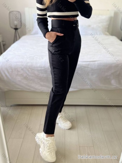 Kalhoty dlouhé s páskem dámské (S-XL) ITALSKÁ MÓDA DDS24A316N/DUR - Černá - M