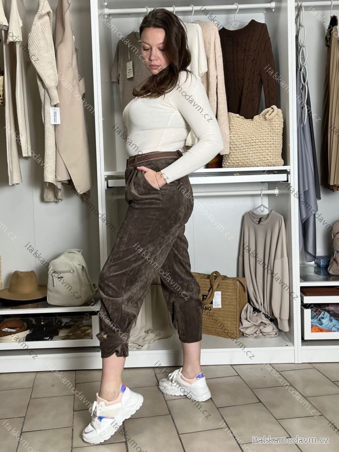 Kalhoty dlouhé s páskem manžestrové dámské SIMONA (XS/S/M ONE SIZE) IMPOZ25LV-25480/DU XS/S/M hnědá