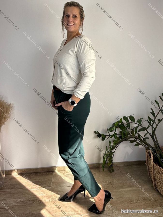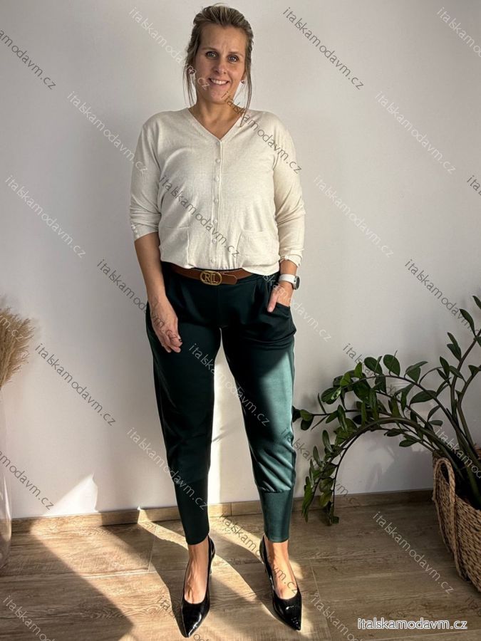 Kalhoty elegantní s páskem dámské nadrozměr JANE (40/42/44 ONE SIZE) ITALSKÁ MÓDA IM425557
